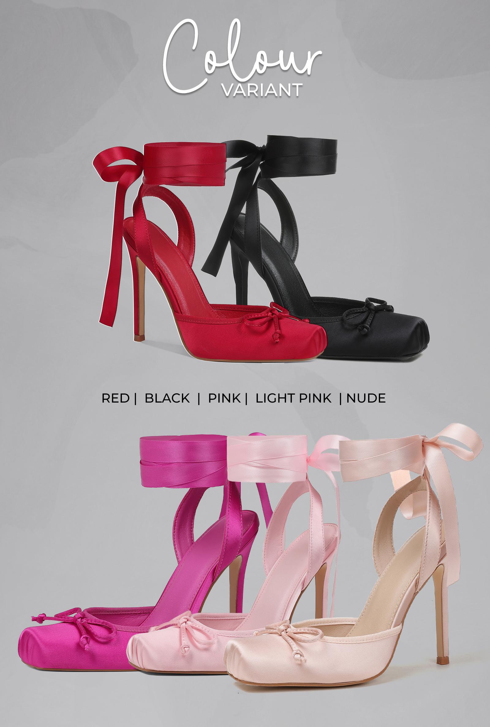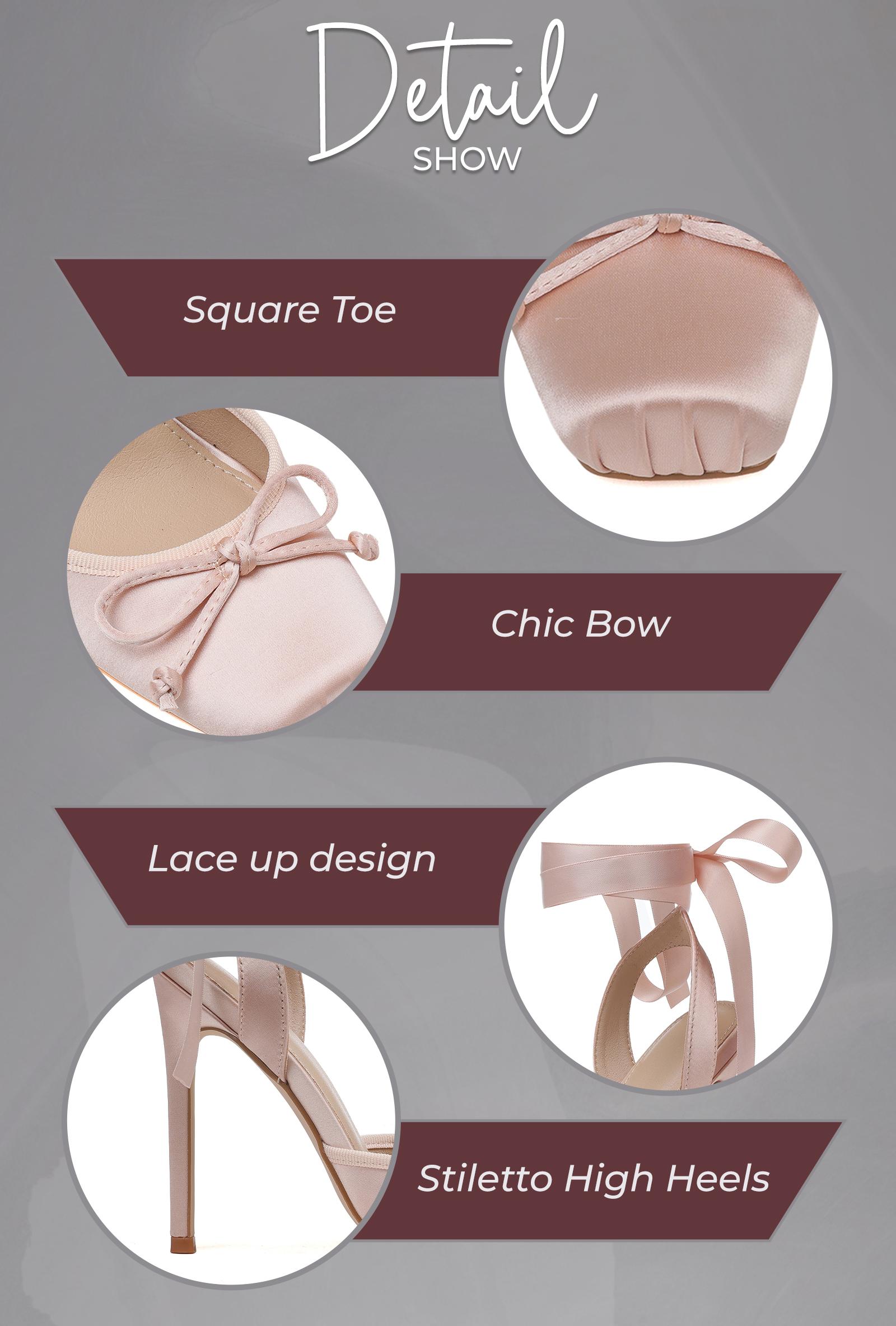 Closure: Designed with long satin ribbons that wrap around the ankle, offering a secure and graceful lace-up finish.