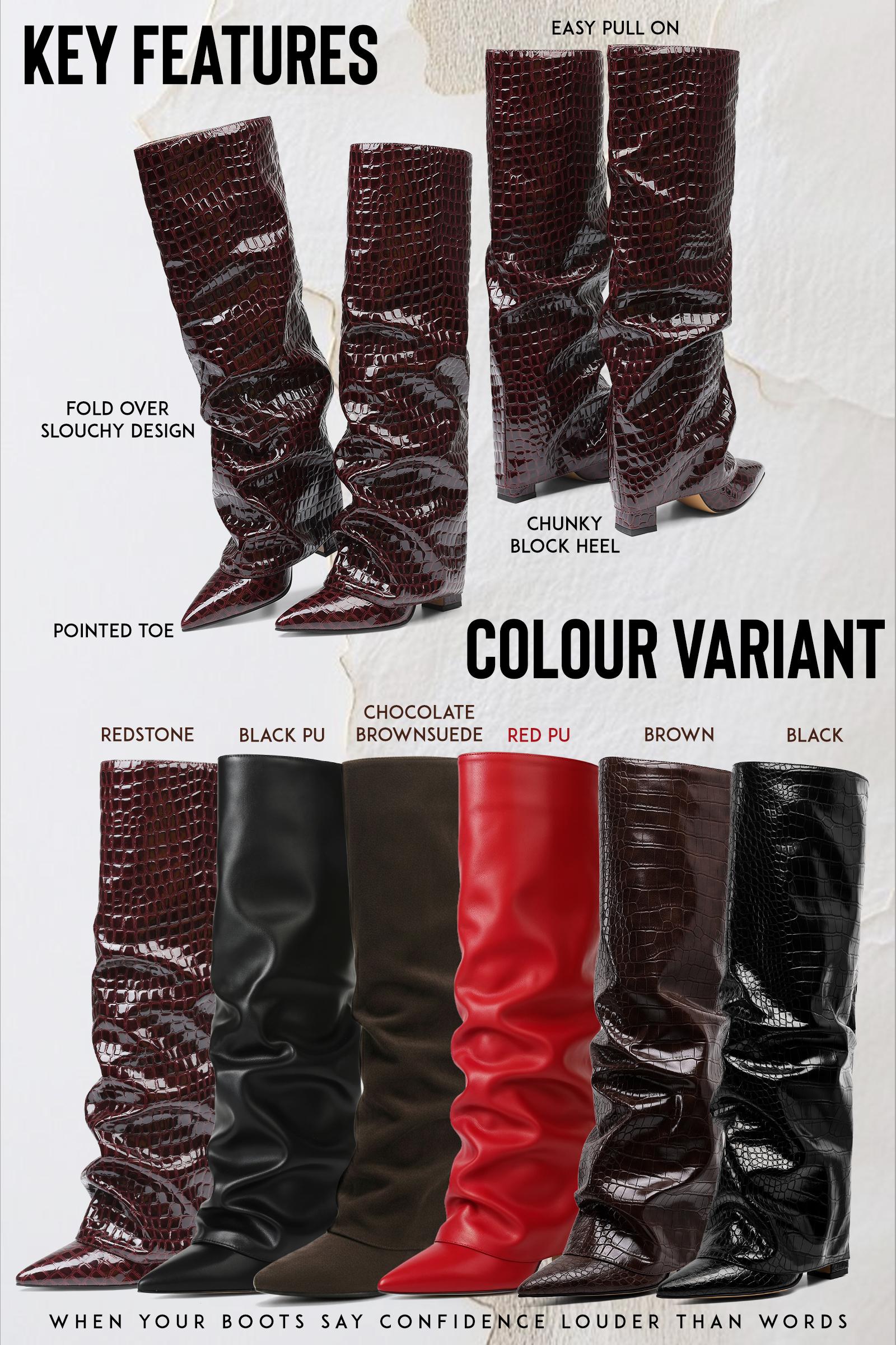 Crafted with premium PU Leather, boots offer all-day comfort and stability with a cushioned insole and sturdy block heel for confident, pain-free walking.