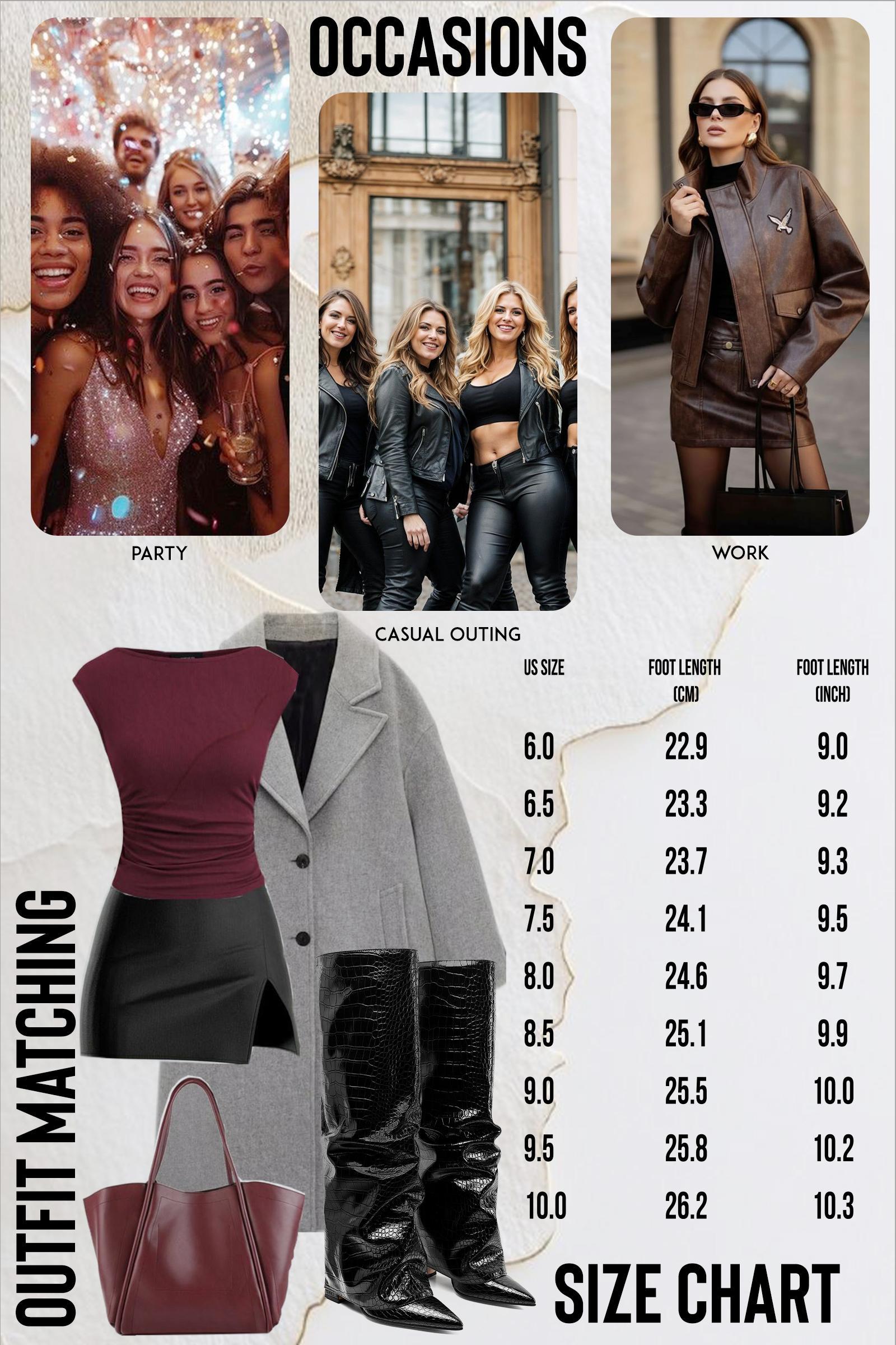Foldable over-the-knee boots with a sleek design, pointed toe, and high shaft offer a chic, elongating look, perfect for elevating any outfit.